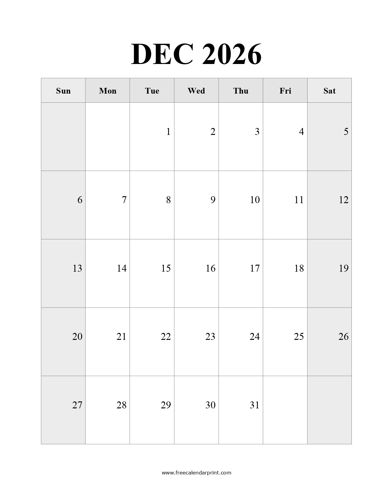 Printable December 2025 Calendar