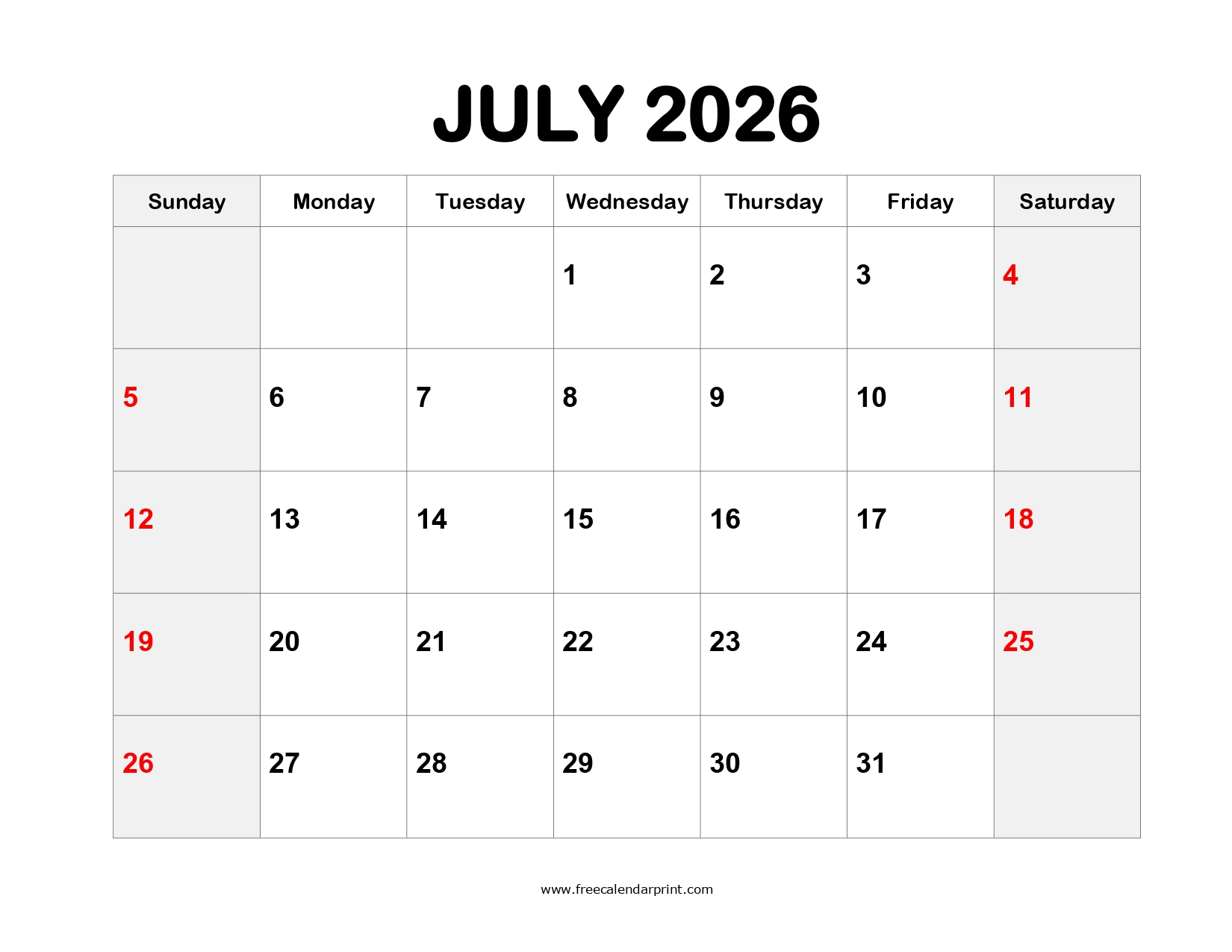 July 2026 calendar printable are shared here indifferent designs and format. Available for free download and ready to print. Check out the collection of July month calendar templates and download a suitable one for your use. Get the free July 2026 calendar here and plan the work activities of the entire month. Just like this month, you can print off the August 2026 calendars as well. A calendar helps you to make a note of these important days and plan the monthly work activities.
