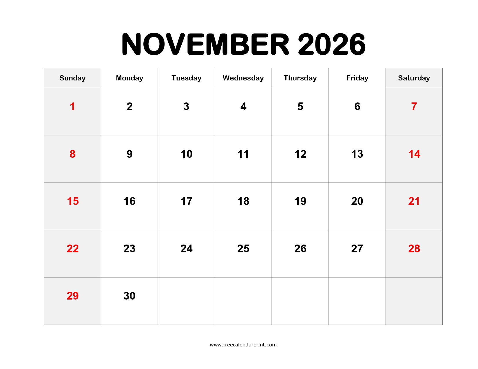 Through this page, we are updating our users with a good collection of printable November 2026 calendar. These calendar templates are using for making a work plan or schedule. So without wasting any further time, check out the templates see and download a best one for your use. All the calendars on this page are for free download only and you can have them in PDF and JPG format.