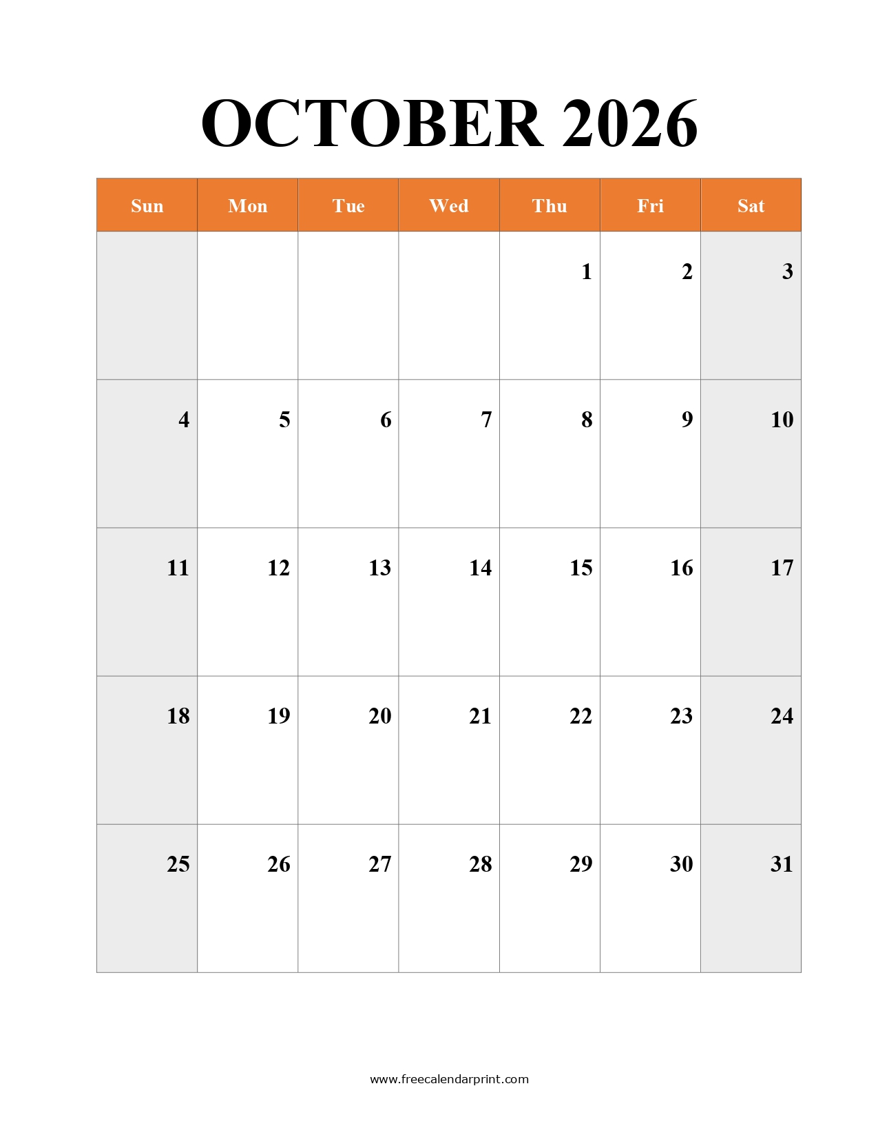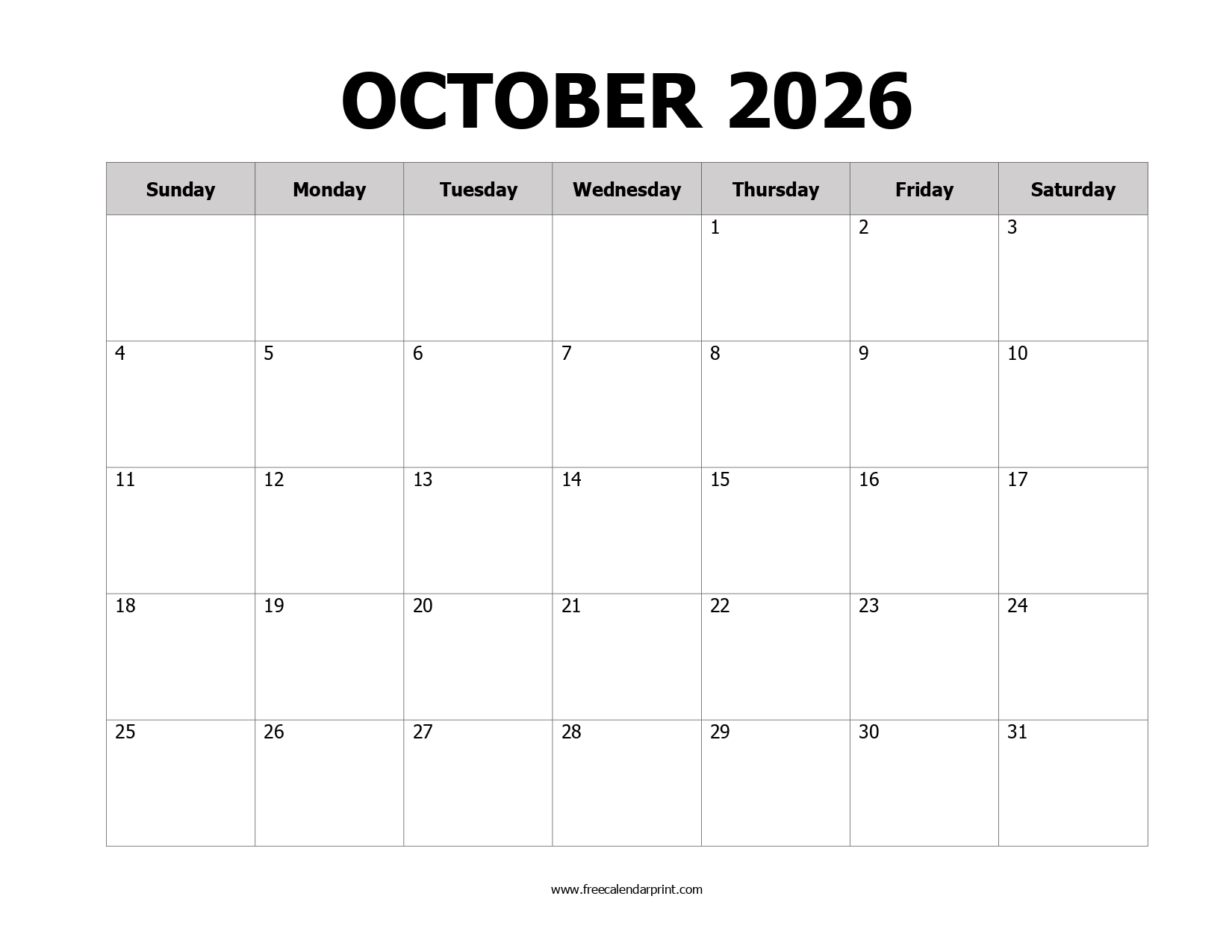 October 2026 Calendar Printable: Every month is special and there is a history attached to every month. In terms of work, every month comes with different tasks, jobs, and workloads. This is why it becomes essential to make a monthly work planner in order to get hold of monthly work activities. Just like any other month, here we’re updating you all with October 2026 printable calendar templates. All the calendars here are printable and available for free download only. Take a print-out of these calendar templates to begin the process of managing October’s monthly work activities. Both students and working professionals can use these calendars for planning their monthly work.
