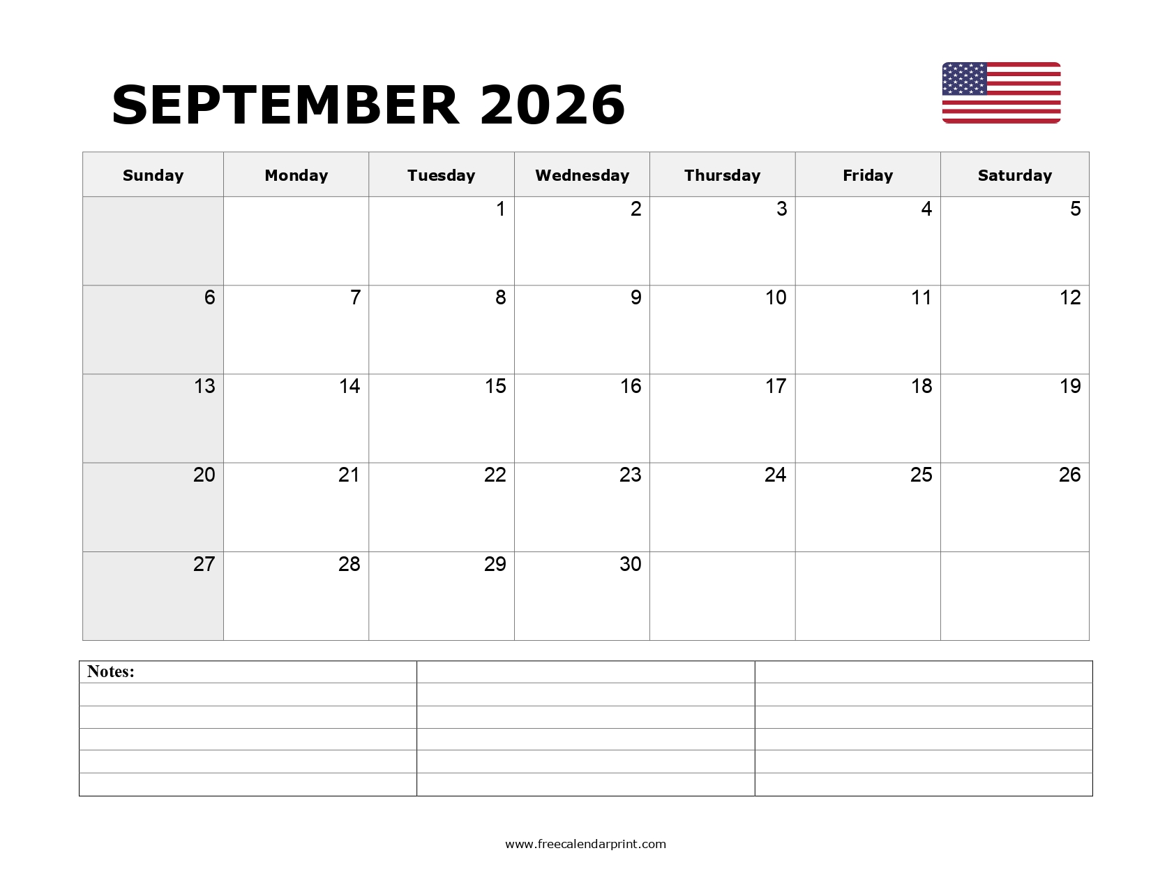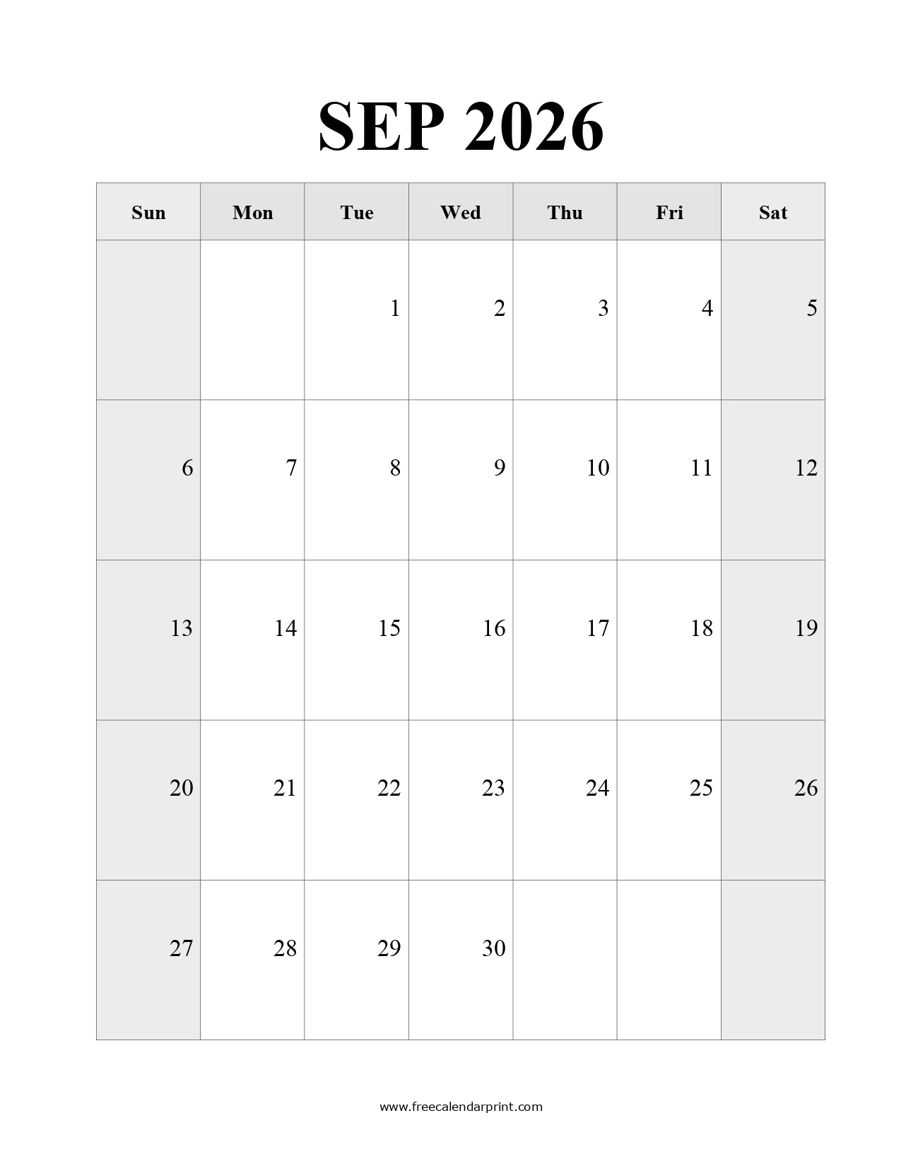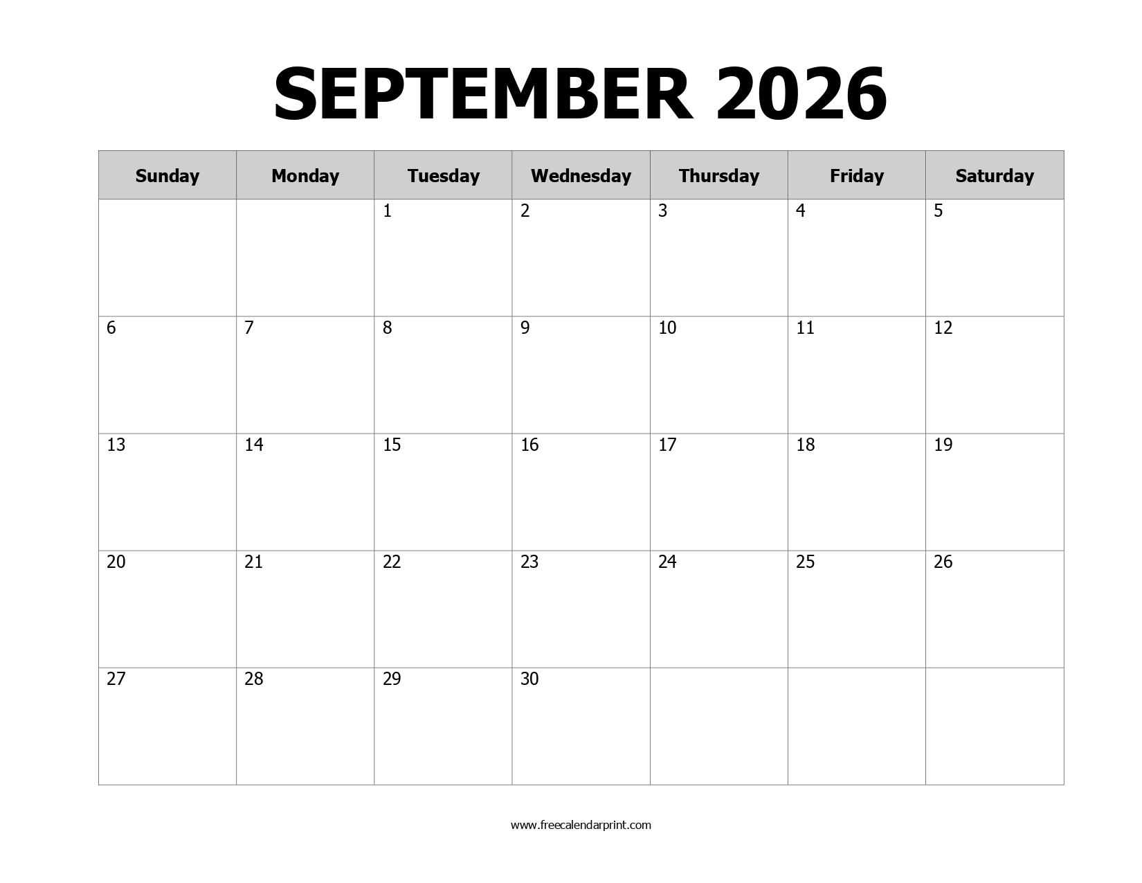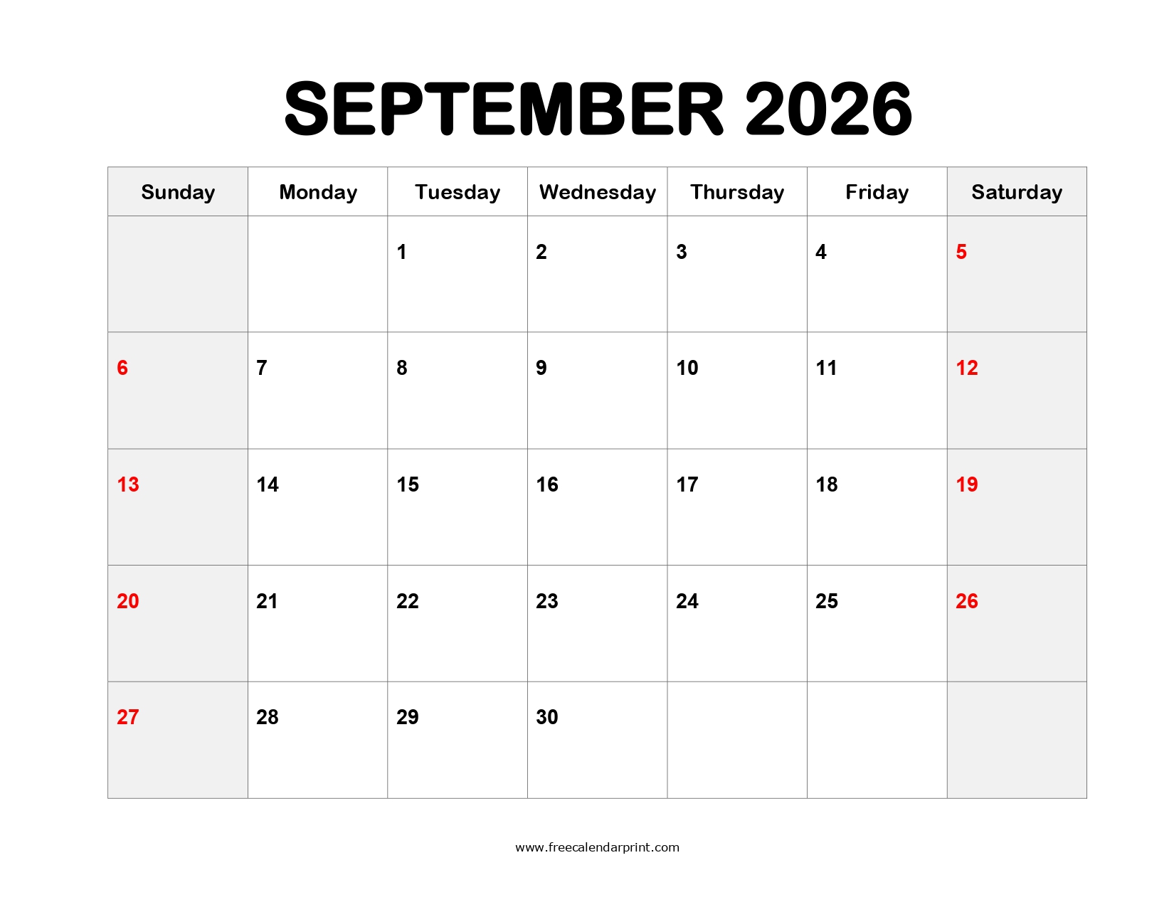 Printable September 2026 Calendar